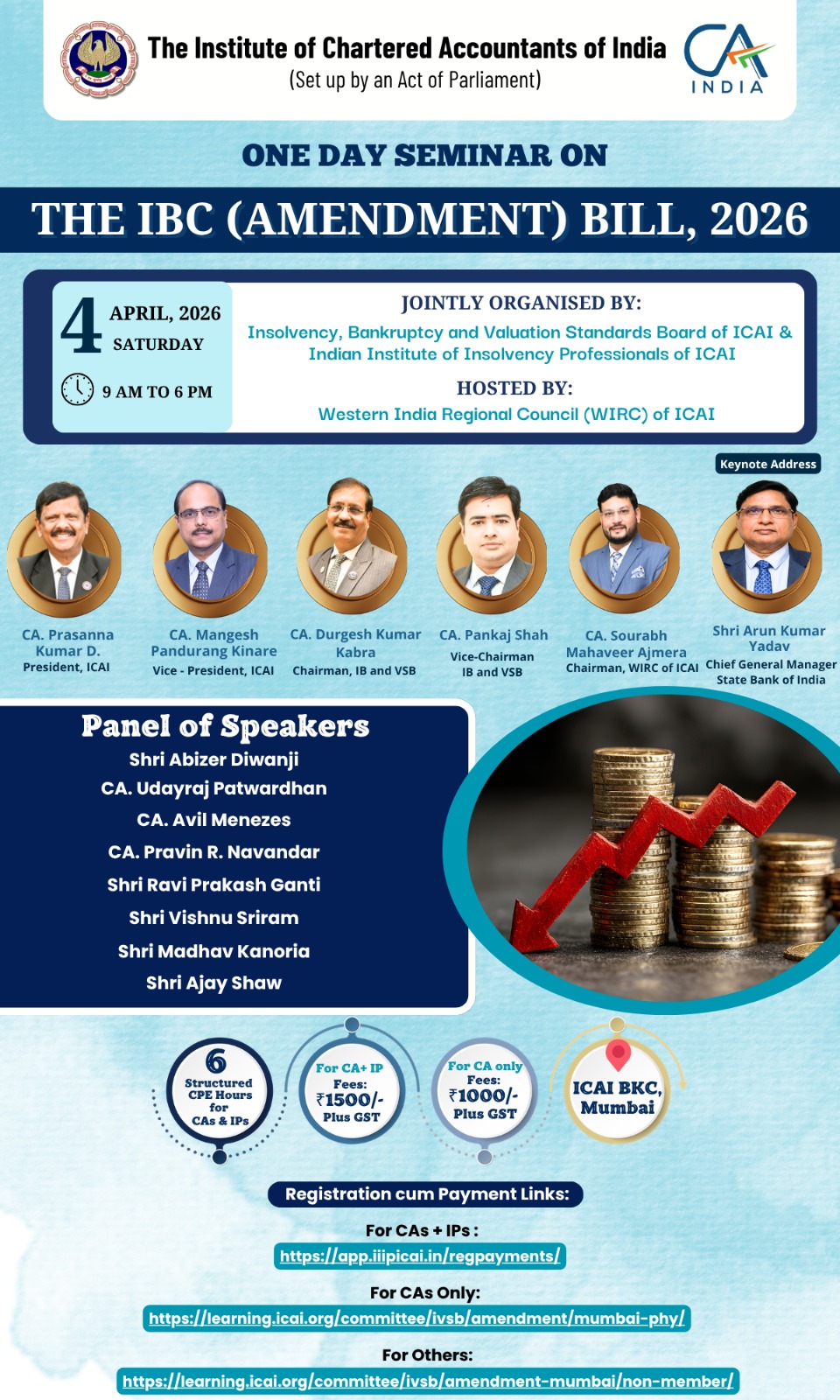 - One day Physical Seminar on The IBC (Amendment) Bill, 2026 on 4th April 2026.